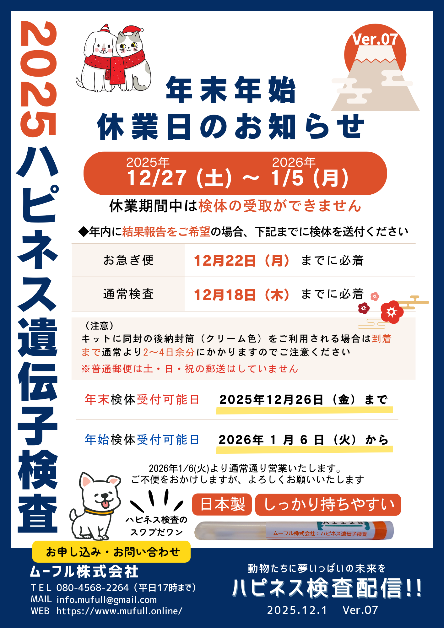 年末年始の遺伝子検査受付のご案内です。